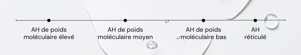 - bas poids moléculaire : pénètre plus profondément pour favoriser la cohésion extracellulaire et une hydratation prolongée