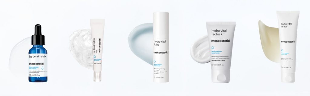 Pour accompagner les professionnels dans la prise en charge experte de la déshydratation, mesoestetic® propose la gamme moisturising solutions avec des produits en cabine et de revente, formulés avec de l’acide hyaluronique au cœur de solutions précises pour tous les degrés de déshydratation et toutes les peaux.