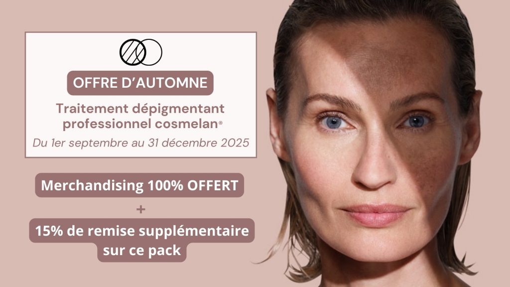 La méthode cosmelan® incarne un traitement de référence mondiale contre l’hyperpigmentation résistante, grâce à sa double approche : action correctrice rapide via la cabine, et régulatrice durable grâce au protocole à domicile. Réaliser ce traitement à l’automne permet d’optimiser sa tolérance et son efficacité — une fenêtre temporelle idéale pour accompagner les clients vers une peau débarrassée de ses imperfections, lumineuse et protégée durablement.