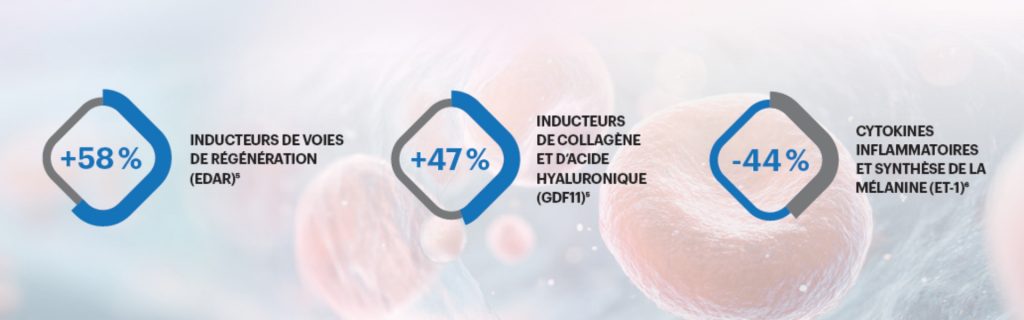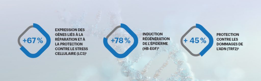 - +67 % d’expression des gènes liés à la réparation cellulaire,