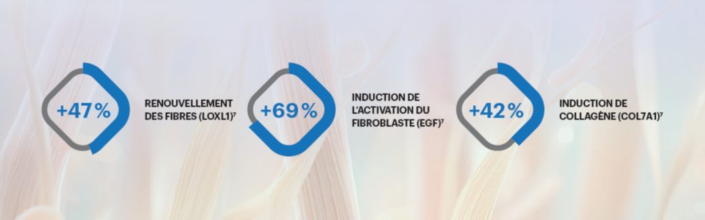 - stimulation du collagène et de l’acide hyaluronique.